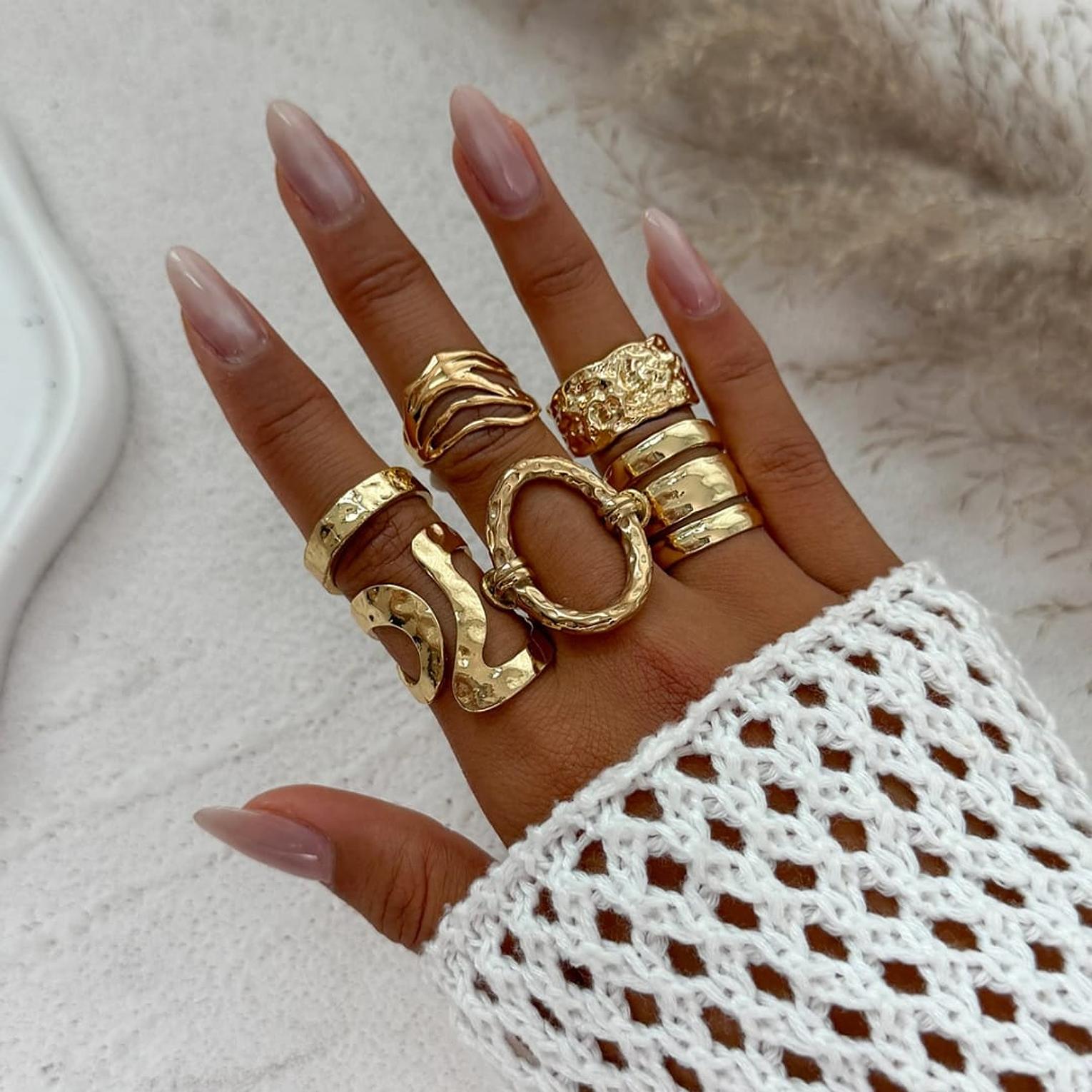 A stylish three rows ring set designed for bold, layered elegance.