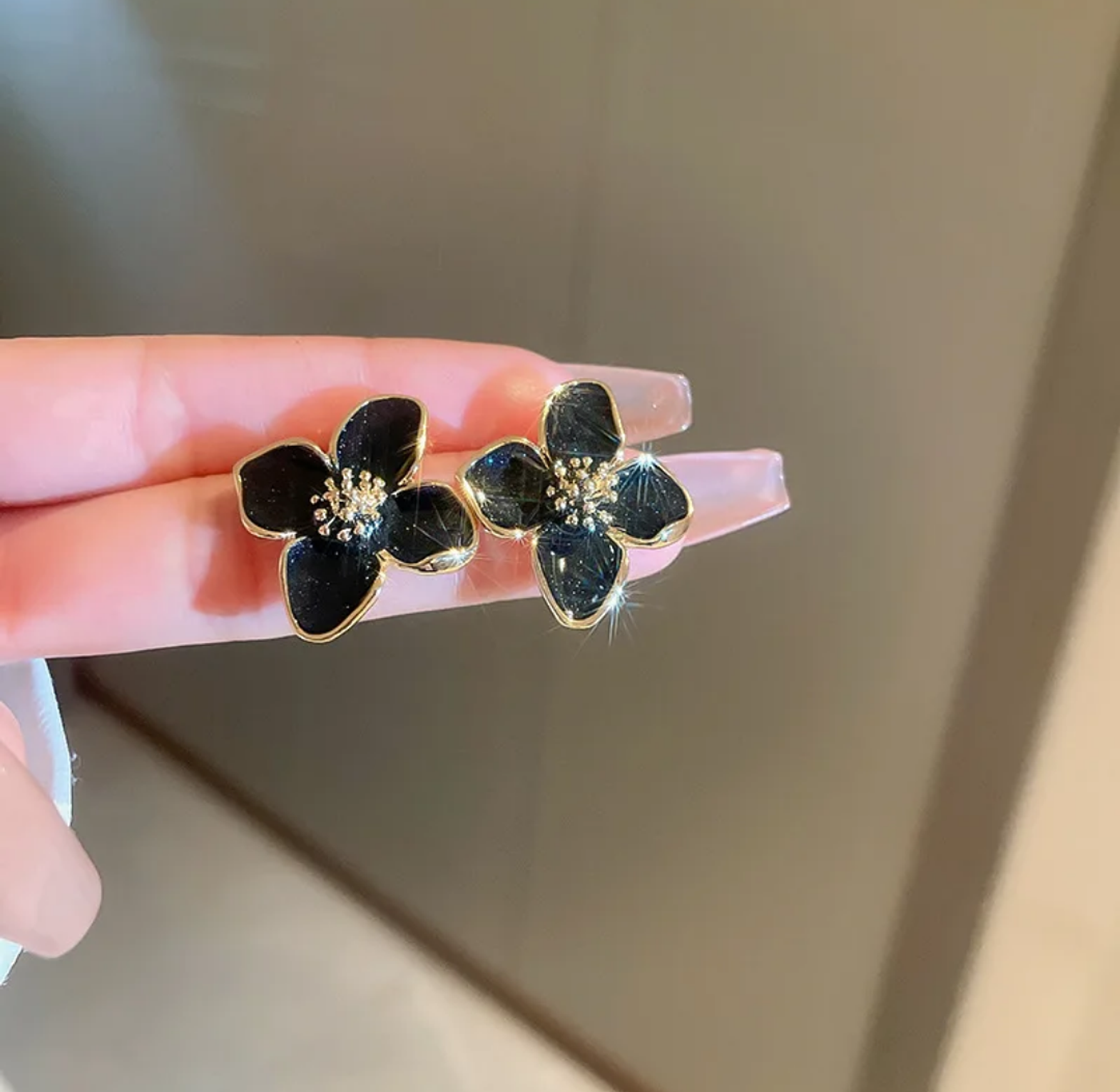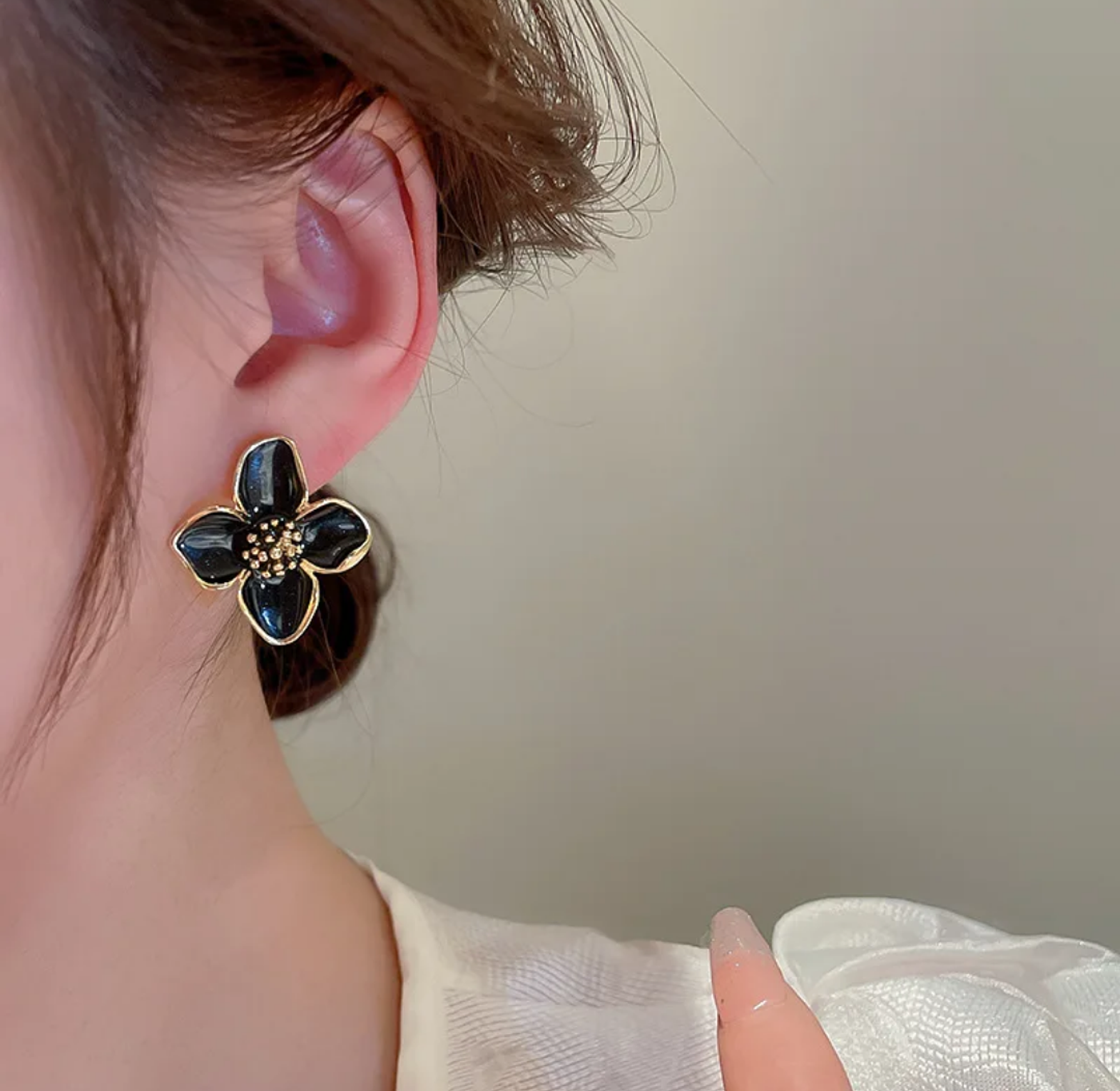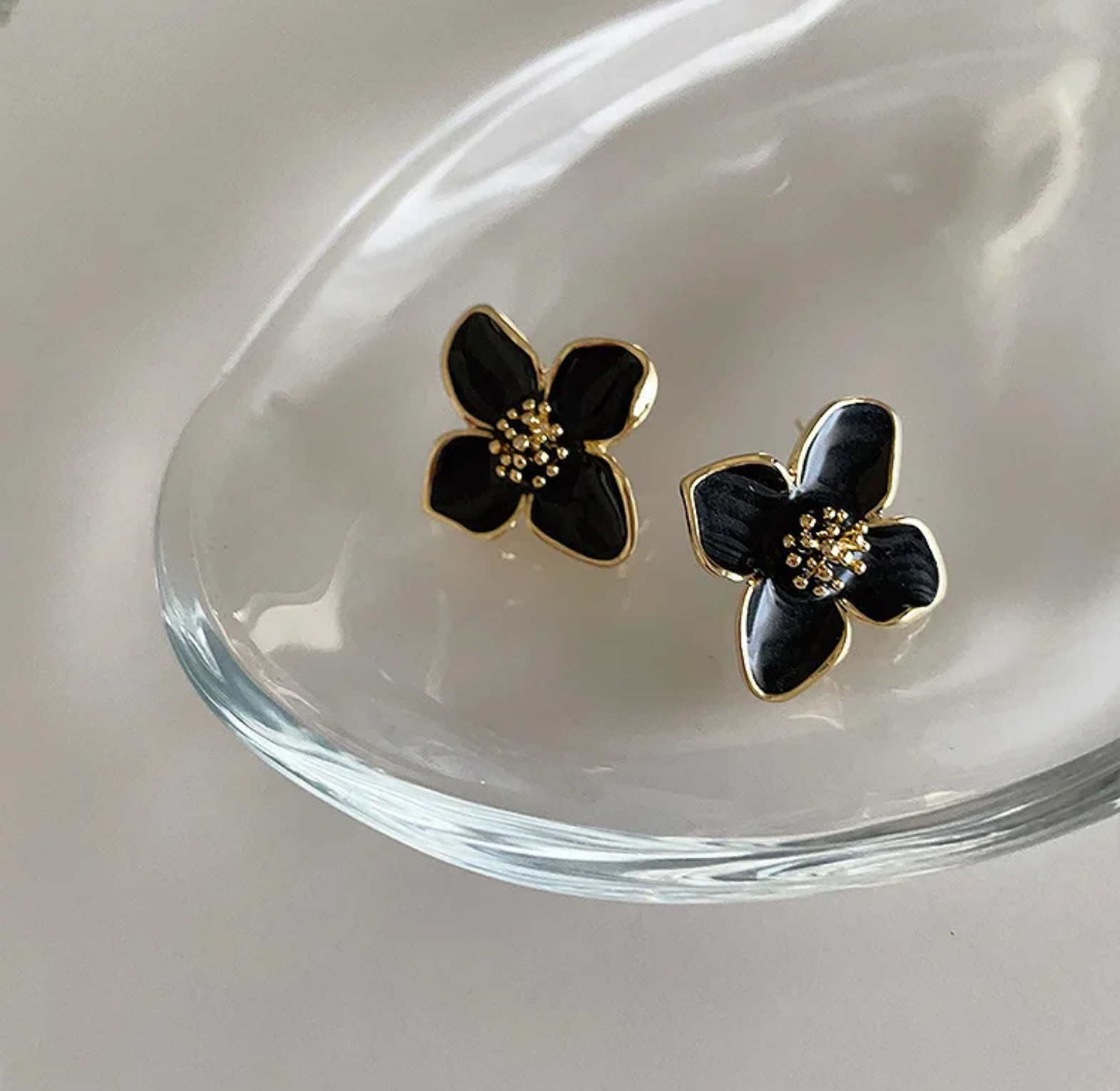 Black flower earrings