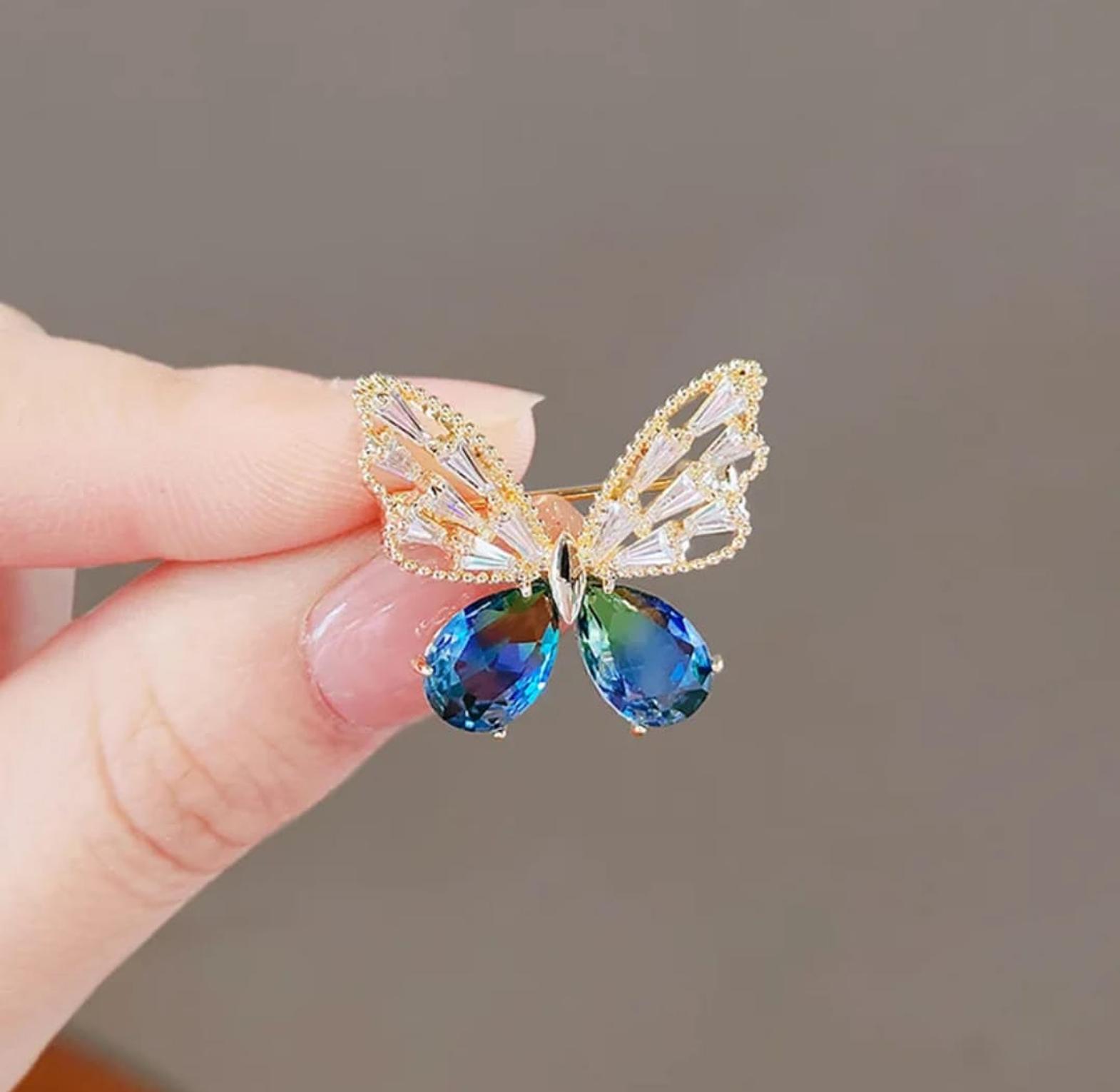 A graceful blue butterfly brooch designed for elegant, eye catching style.