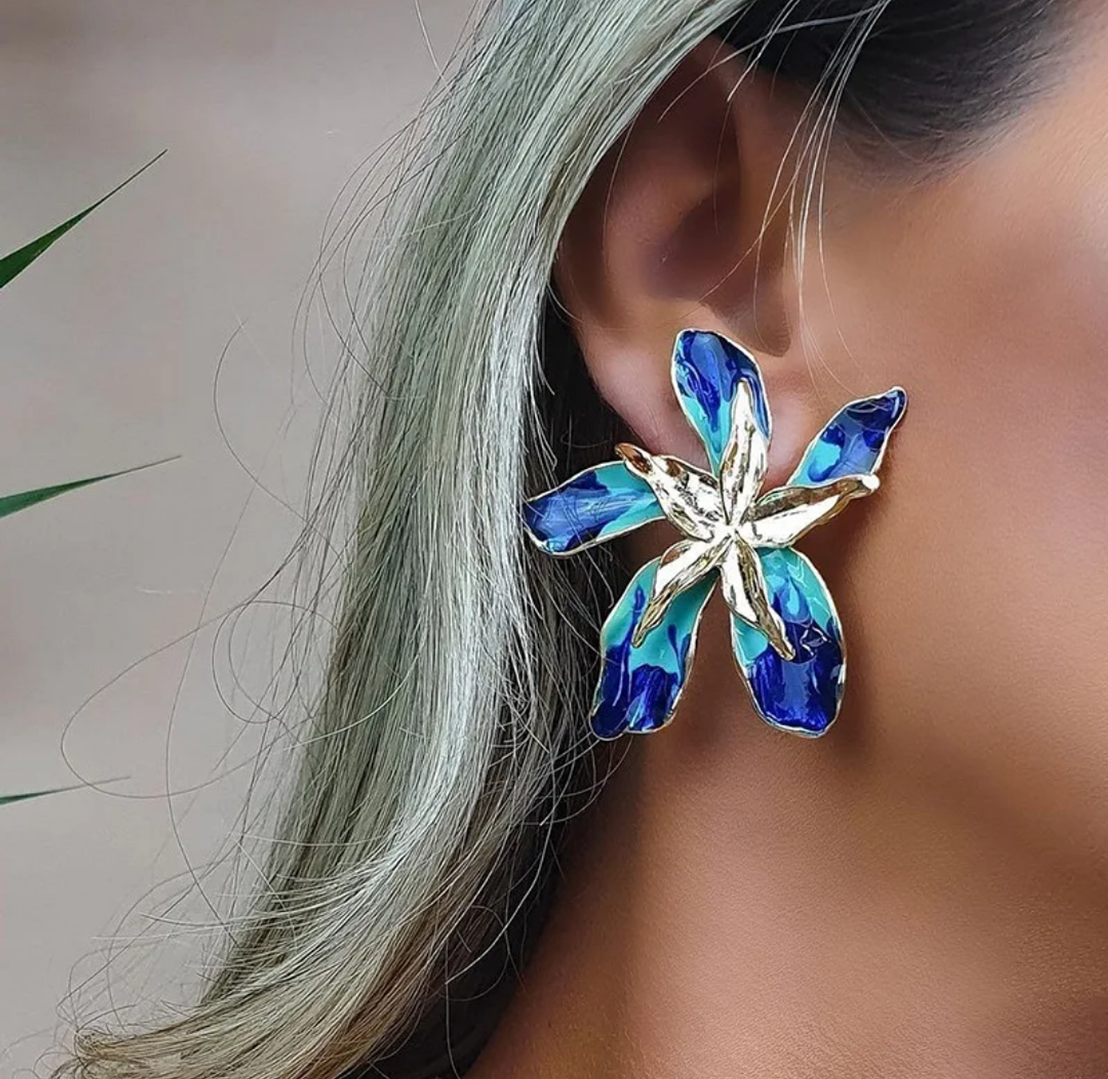 Blue/green 3D flower earrings