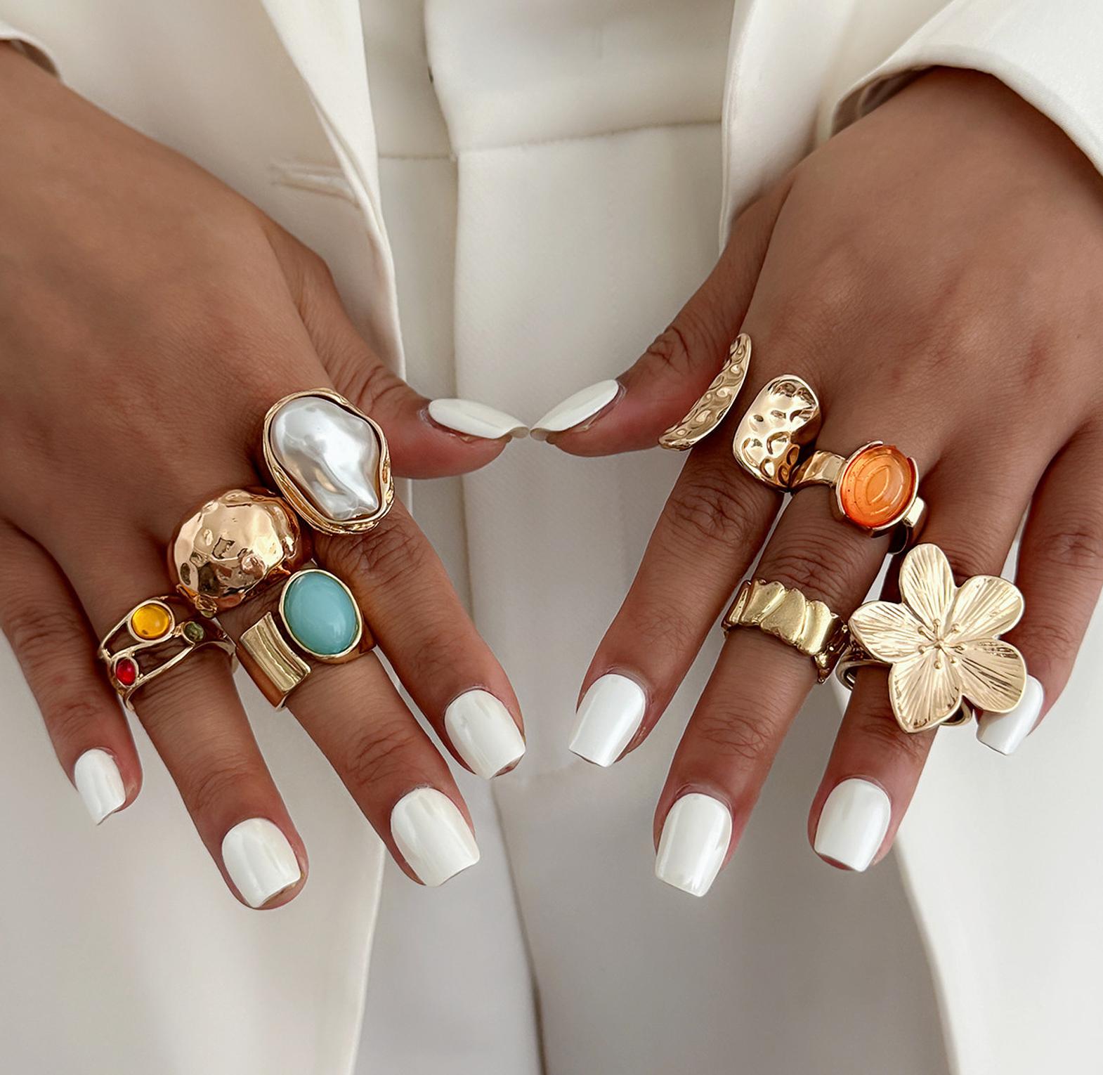 The set's diverse color palette and varied textures make it perfect for those who love to express their personality through jewelry. From smooth polished finishes to textured hammered surfaces, and from chunky statement pieces to delicate stacking bands, this collection offers endless mixing and matching possibilities. Perfect for festival season, vacation styling, or adding a pop of color to everyday outfits.