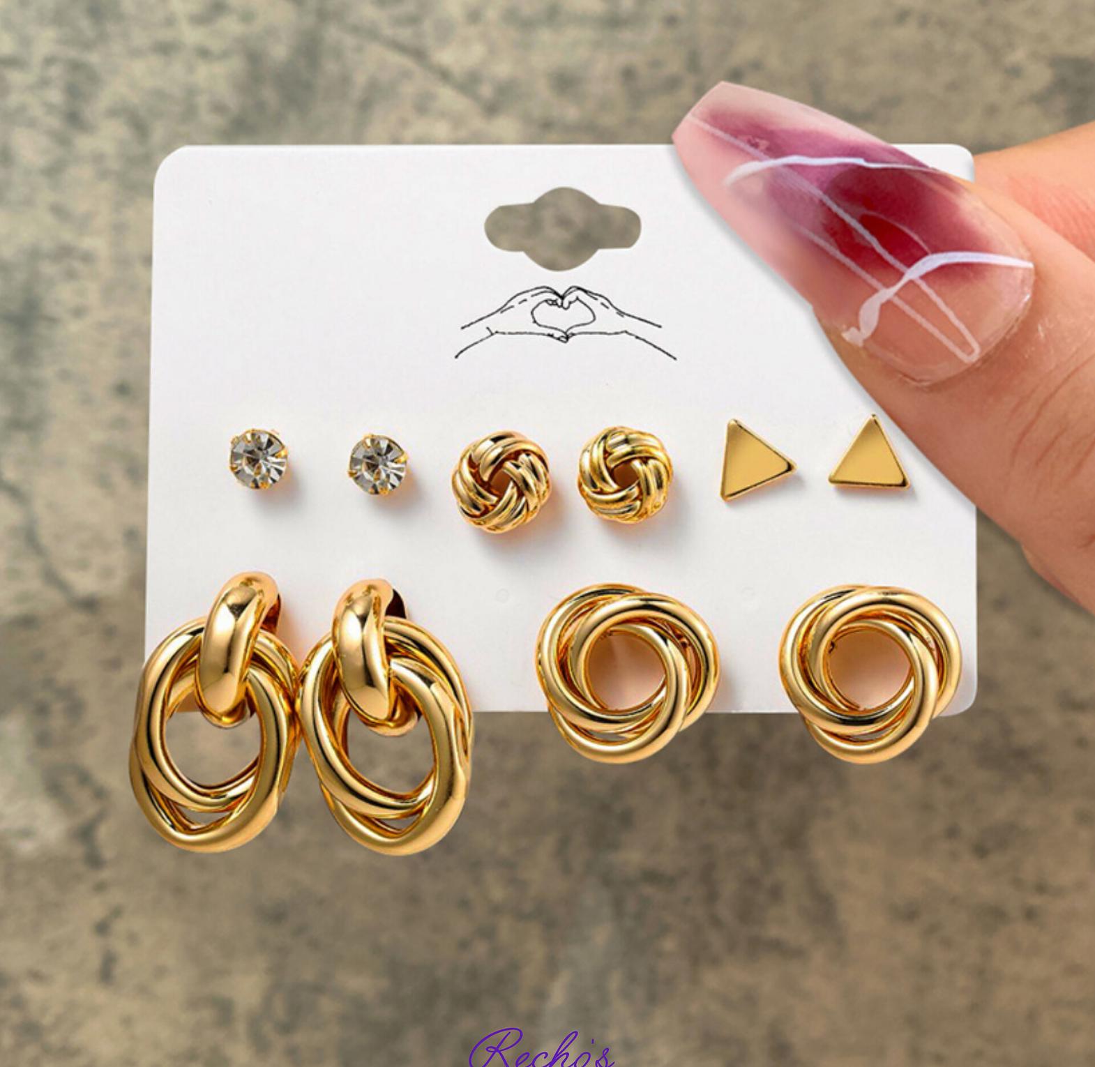 3 small studs earrings 2 large studs earrings set