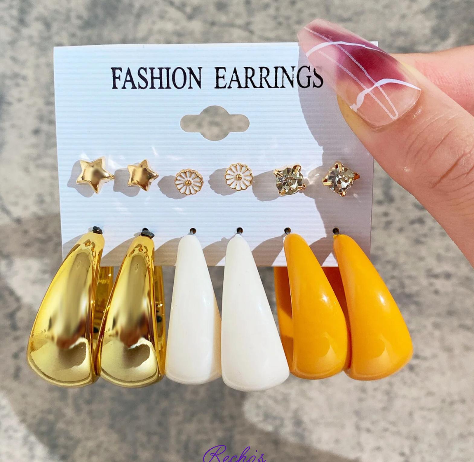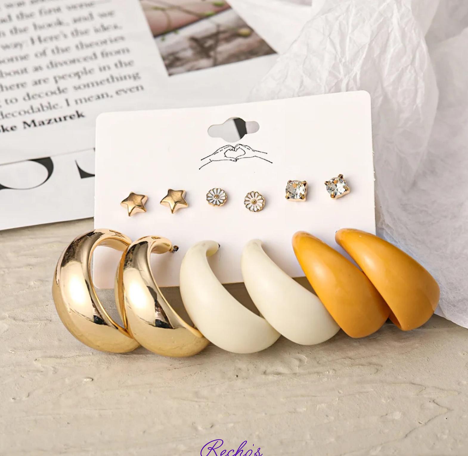 3 stud set 3 loops set White and orange large hoops
