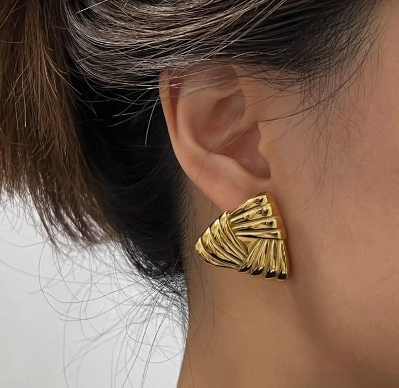 Sleek triangle stud earrings that offer modern geometric style with understated elegance.
