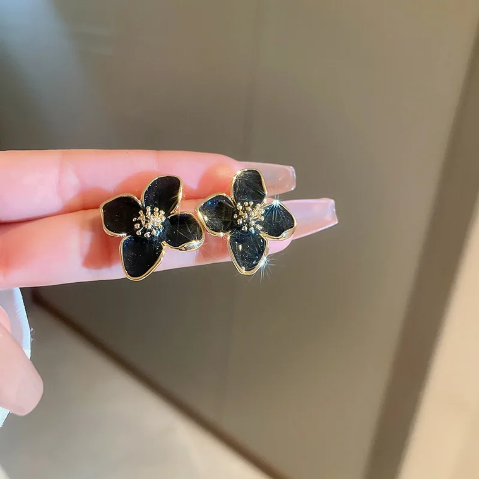 Black flower earrings