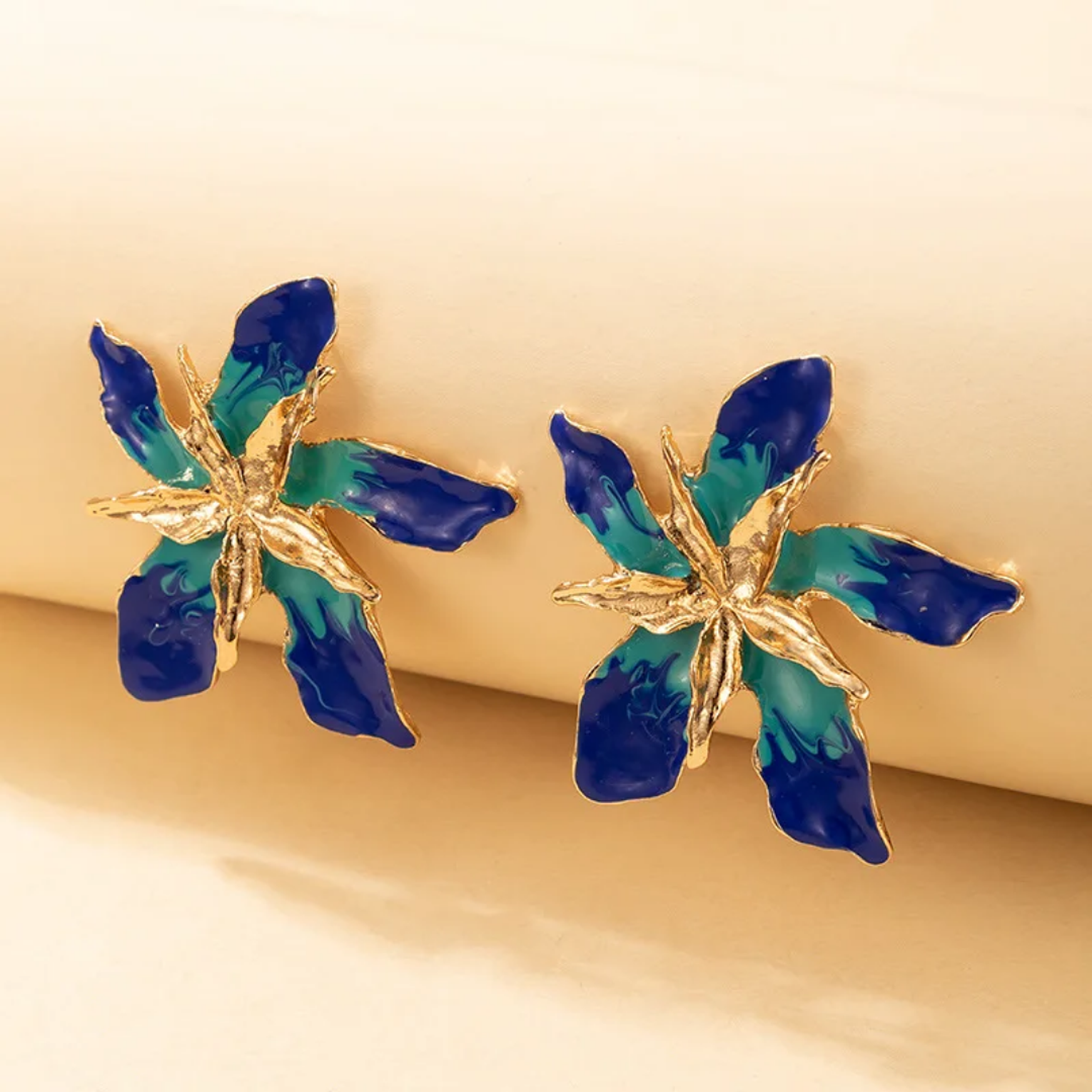 Blue/green 3D flower earrings