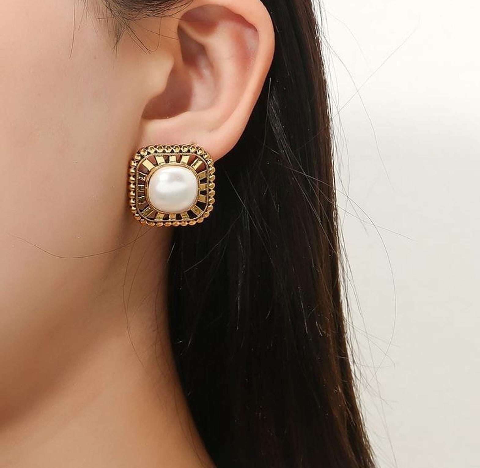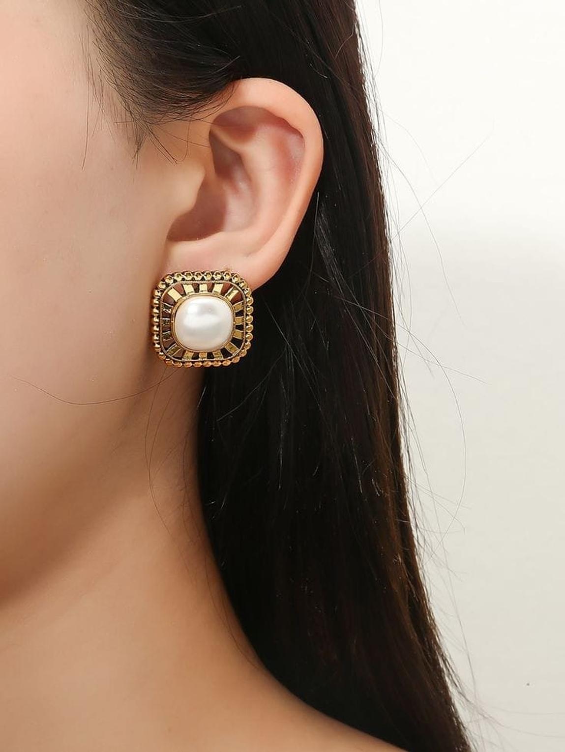 Pearl brass earrings