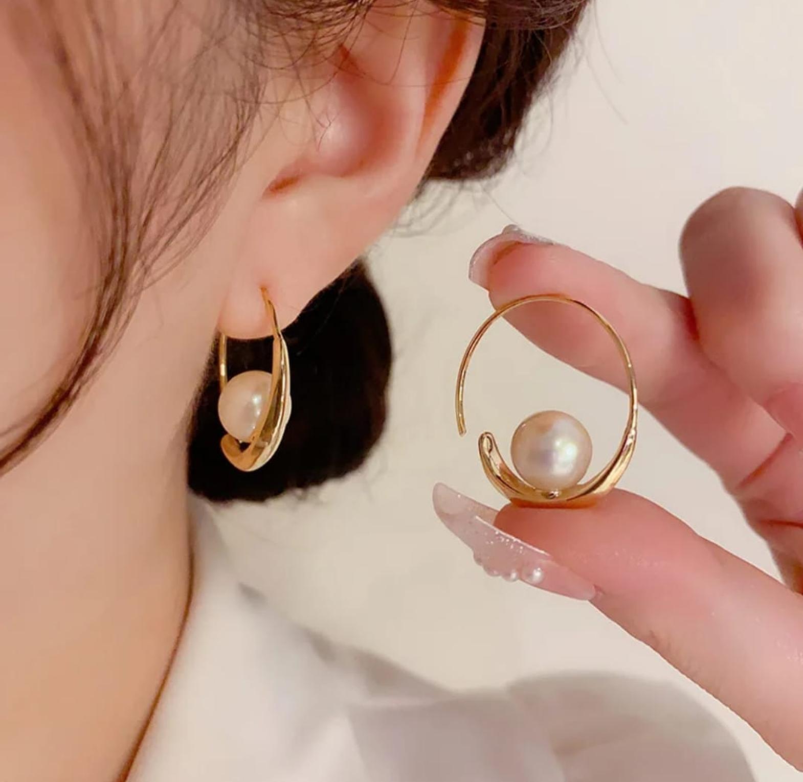 Classic pearl loop earrings that combine timeless elegance with modern versatility.