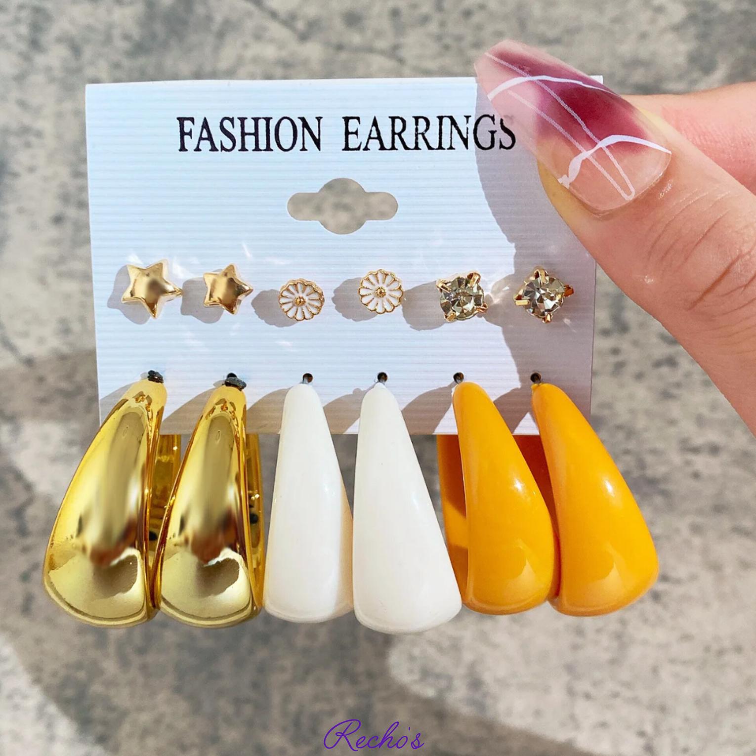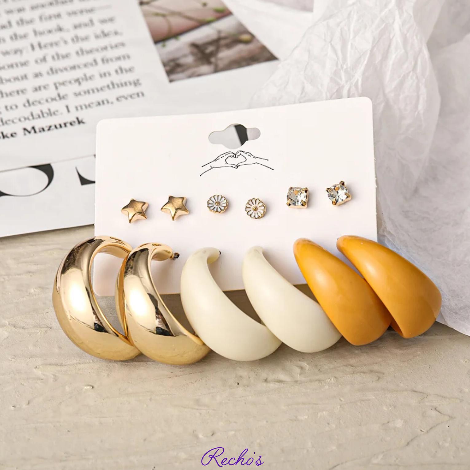 3 stud set 3 loops set White and orange large hoops