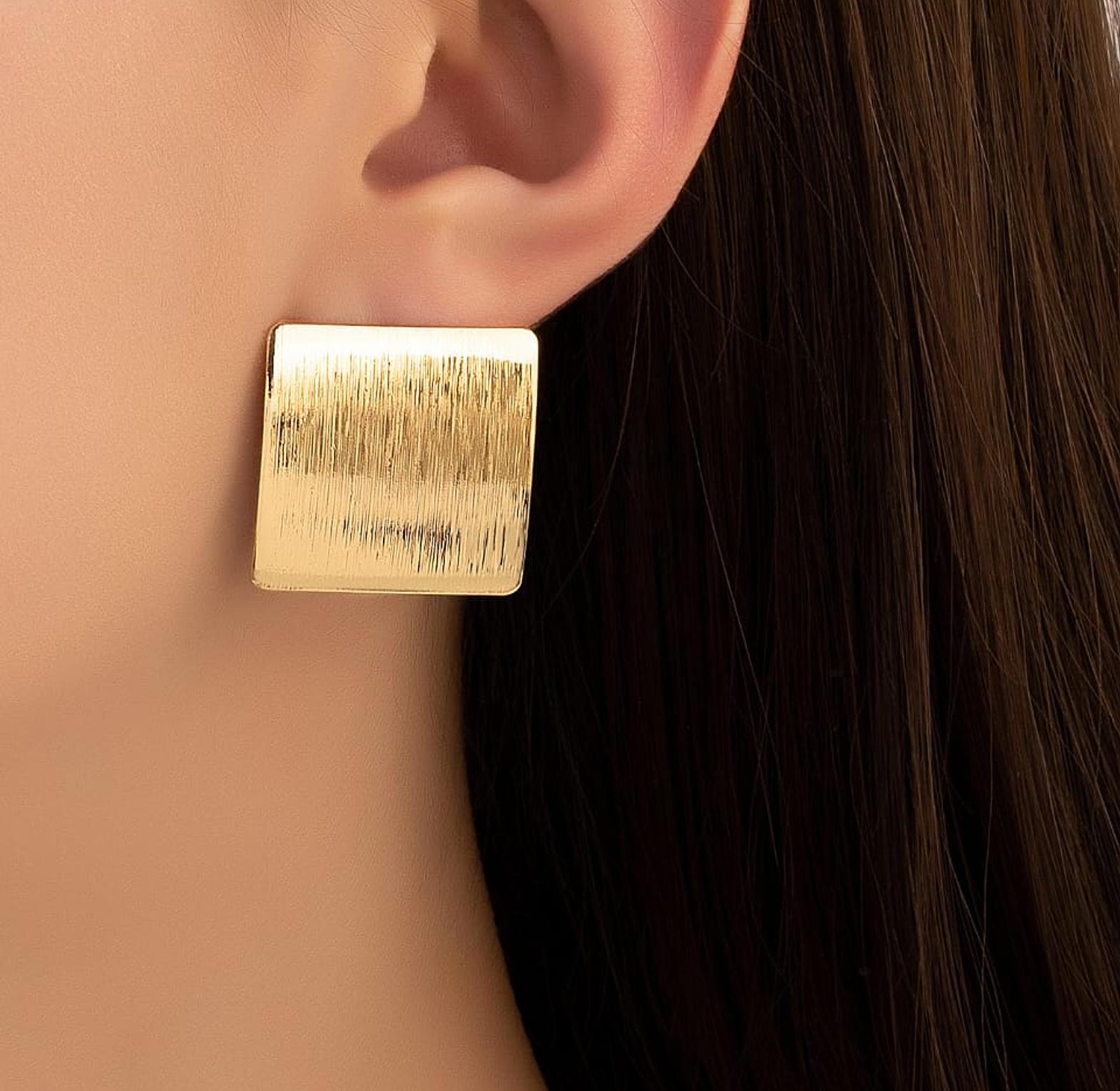Minimalist square stud earrings that offer clean lines and timeless sophistication.